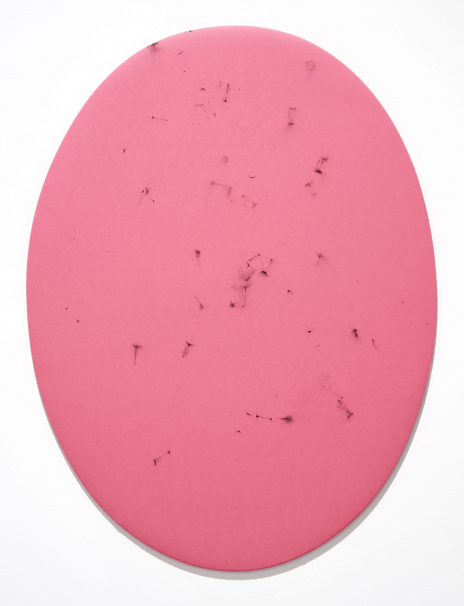 Blind tactics results from a set of experimental processes that responded to questions of material-force relations. It registers impacts and impressions from charcoal projectiles inflecting the surface as an index of intensity. The carbon in the charcoal serves as a common element in all known life, as well as a range of uses from gunpowder to fuel. The residue of collision events recorded in Blind tactics evoke numerous encounters at various scales through which the dynamic movement of matter unfolds.